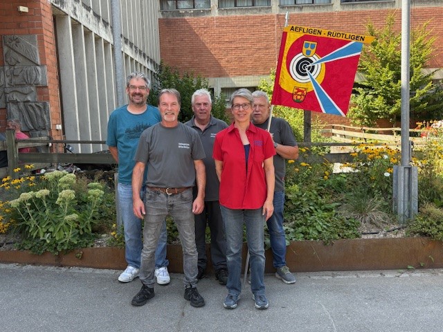 Die Gruppe E1 erreichte den 5. Rang. Die Schützen und die Schützin von links nach rechts: Patrik Affolter, Andreas Ryser, Fritz Hauert, Theres Wermuth und Christoph Jenni.