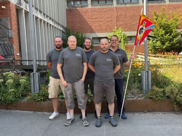 Die Gruppe E4 erreichte den 4. Rang. Die Schützen von links nach rechts: Patrick Rhyner, Andreas Trüssel, Pascal Rhyner, Mathias Müller und Roger Murri.